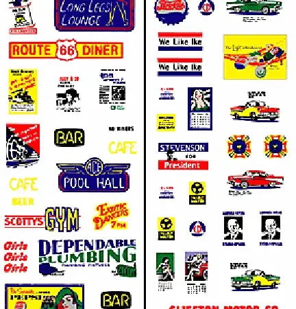 #562 Dry transfer 1950s signs